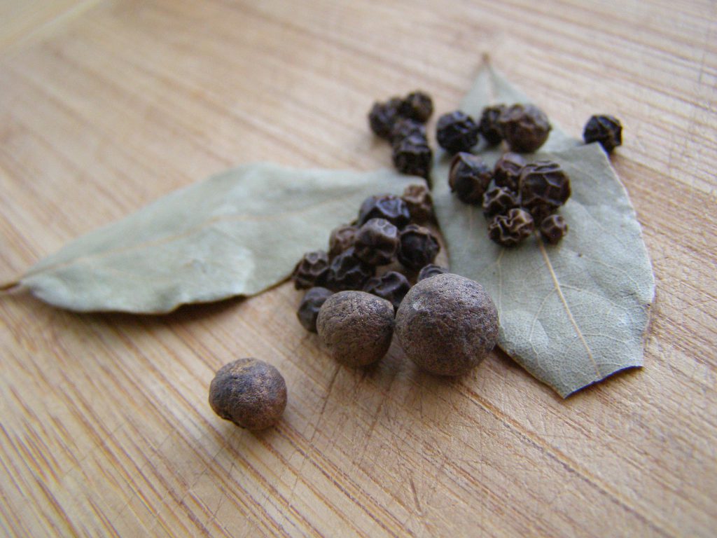 Бросаем картошку в суп. Снова доводим до кипения, убавляем огонь накрываем крышкой. Варим, пока она не будет полуготова. Затем попробуйте крупу и мясо. Готовы ли они. И кладите лук туда. За ним через минут 5 положите в кастрюлю специи. У меня была лаврушечка и перец горошком – душистый и обычный.
