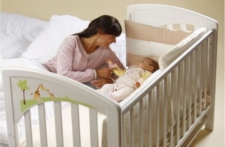 Кроватки, одна боковая стенка которых убирается, чтобы ее можно было вплотную придвинуть к родительской. Таким образом, маме не нужно вставать ночью, так как ребенок находится под боком, но, в то же время, младенец не находится во взрослой кровати, что опасно, а спокойно сопит на своей территории. Есть деревянные модели, есть тканевые, есть комбинированные варианты, когда торцы изготовлены из дерева, а боковые стороны тканевые, с открывающейся «дверцей».