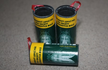 - Липучки. Они развешиваются на кухне или в шкафу. На липучку могут прилипнуть только бабочки. Такой способ не подходит для ликвидации личинок.
